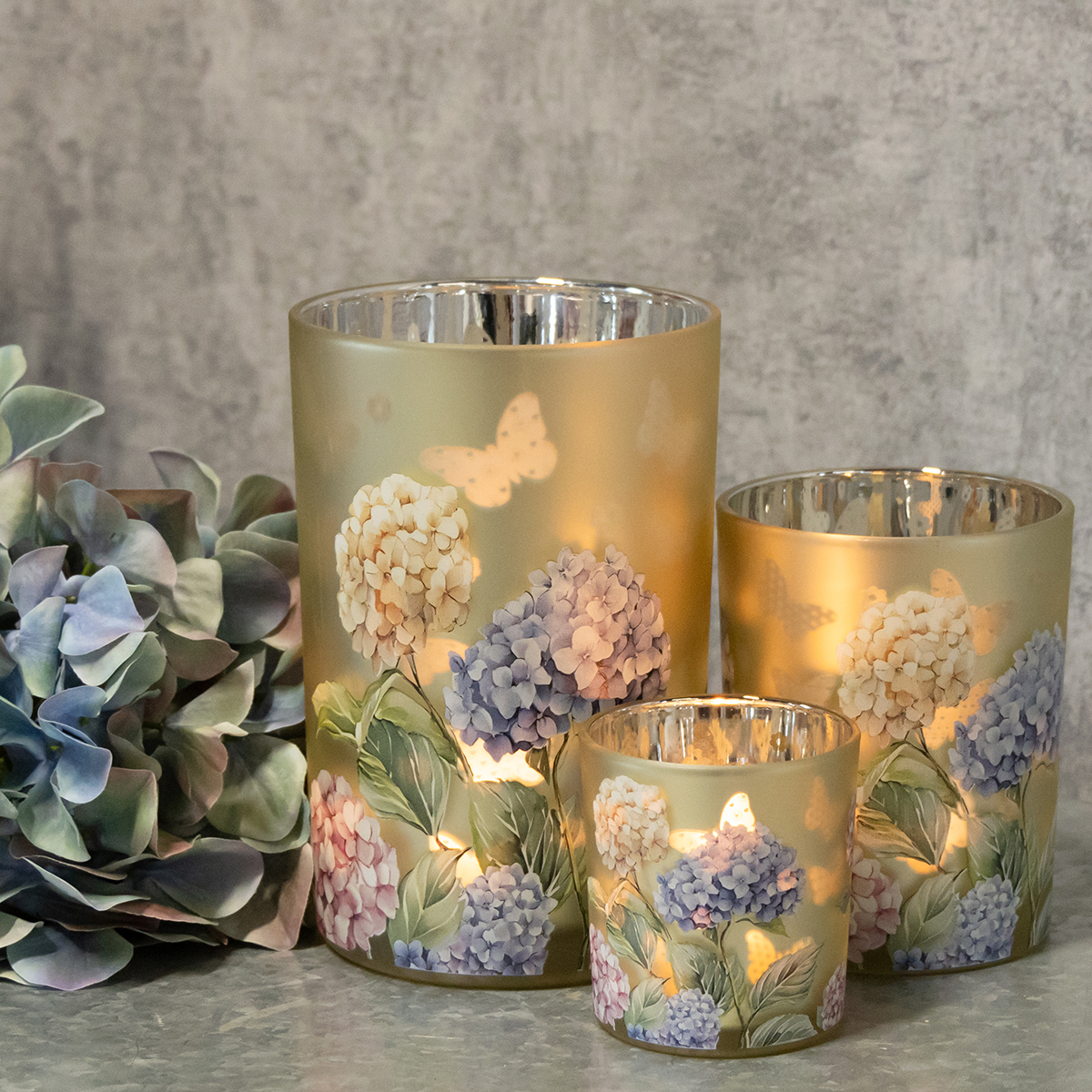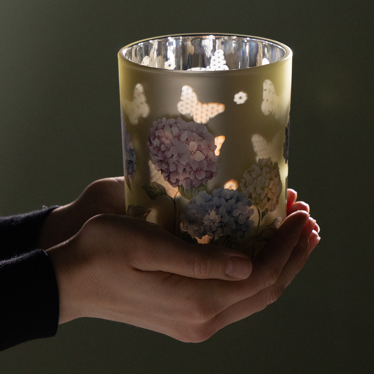 Jemný motiv hortenzie v jemných pastelových odstínech růžové, modré a béžové je obzvláště výrazný a podtrhuje elegantní styl svícnu. Snadno se hodí do různých stylů interiérového designu – ať už se jedná o country, shabby chic nebo moderní boho. Udělejte si pohodlí a užijte si okouzlující okamžiky světla, které vytvářejí malé ostrůvky štěstí v každodenním životě!