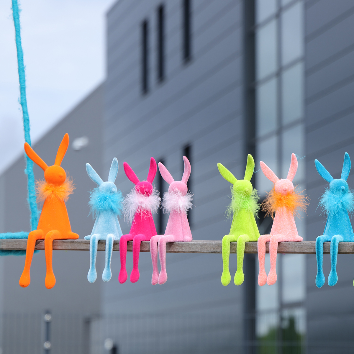 Tyto figurky velikonočních zajíčků okouzlují svým originálním a zároveň moderním designem. S výškou 27 cm zaujmou harmonickými tvary a výjimečným materiálem. Sametový povločkovaný plast v lososové a zářivě oranžové barvě je nejen vizuálně výrazný, ale také příjemný na dotek. Malé péřové boa z pravého peří dodává zajíčkům obzvláště zvláštní nádech. Ať už je použijete jako dekoraci na stůl v obývacím pokoji, na parapetu nebo jako hravý doplněk do předsíně – možnosti jsou prakticky nekonečné.