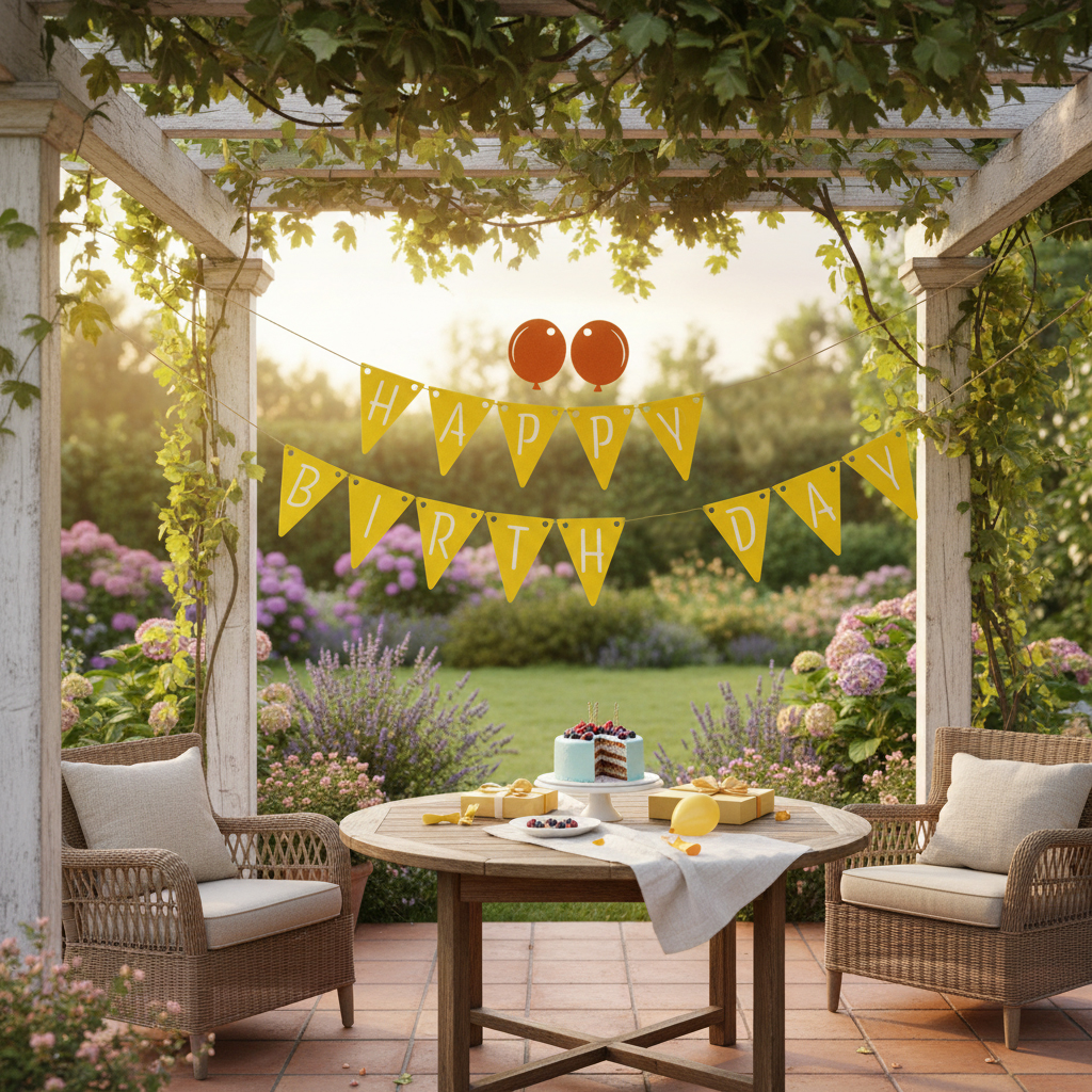Zavěste prapor do jednoho vlákna jako nápis nebo slova rozdělte na dvě úrovně pro vaši narozeninovou výzdobu.