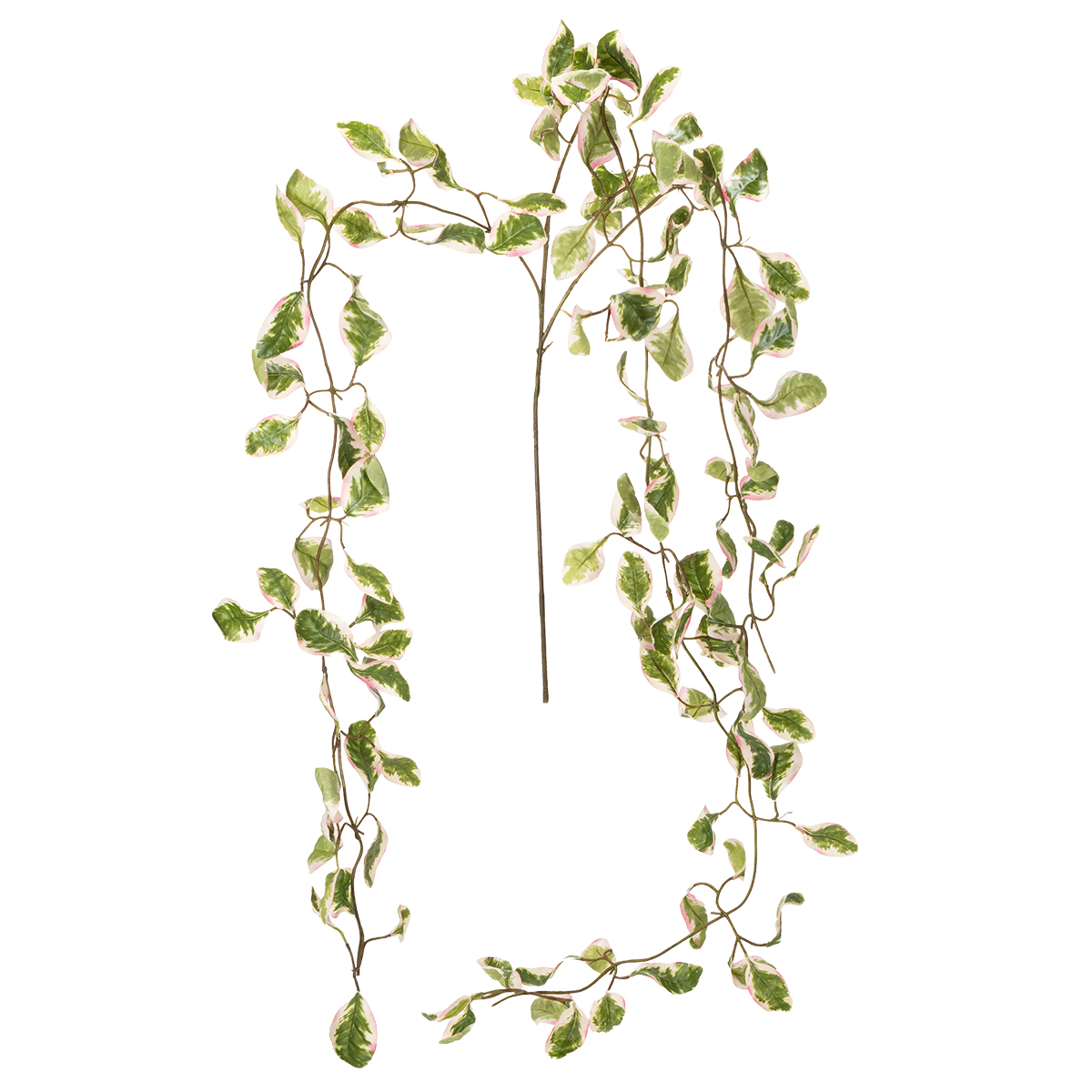 Tato umělá rostlinná girlanda byla navržena s pečlivou pozorností k detailu, aby vytvořila co nejpřirozenější vzhled. Oválné až eliptické listy s hladkými okraji vypadají, jako by byly čerstvě utržené. Světle růžové akcenty jsou obzvláště okouzlující a při bližším zkoumání se stanou skutečným poutačem. Díky hustému olistění a harmonickým barevným detailům se girlanda krásně hodí do různých stylů, od boho a country až po shabby chic.