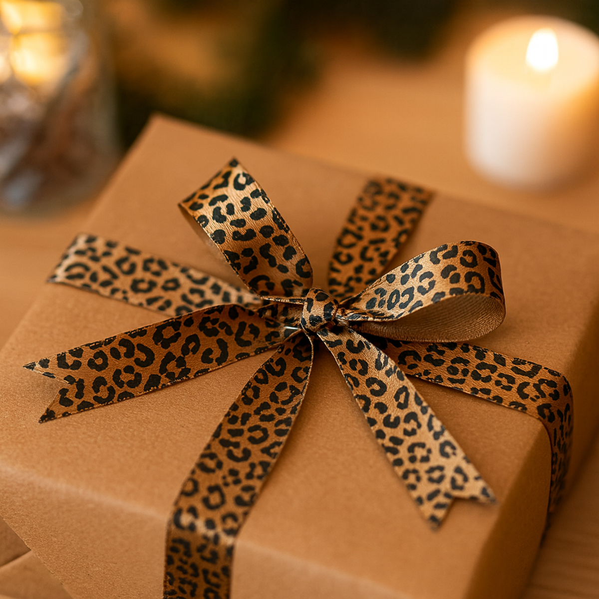 Hnědočerná dárková stuha s leopardím vzorem je nejen všestranná, ale také jednoduše krásná. Hedvábná textura je hladká na dotek a vytváří elegantní vzhled – skvělý způsob, jak vylepšit vaše kreativní projekty. Použijte stuhu s leopardím vzorem například pro stylové balení dárků. Zkombinujte ji s jednoduchými, hladkými papíry a dodáte tak designu nádech extravagance. Nebo si vytvořte luxusní mašle pro vaše květinové aranžmá – kombinace květinových prvků a divokého leopardího vzoru dodává zvláštní kouzlo. Látková stuha je také ideální pro zdobení vlasových doplňků – jako jsou čelenky nebo gumičky do vlasů. Ti, kteří dávají přednost boho nebo etnickému stylu, mohou ozdobnou stuhu s leopardím vzorem použít také jako ozdobu pro řemeslné výrobky nebo párty dekorace. Pro módní fanoušky nabízí dokonce potenciál jako akcentní proužek na oblečení nebo taškách. Prostě úžasná v kombinaci s přírodní lněnou látkou, sytými zemitými tóny nebo jednoduchými černobílými kontrasty! 18metrová role vám poskytuje dostatek flexibility pro všechny vaše projekty. Ať už se jedná o floristiku, scrapbooking nebo zakázkovou módní tvorbu – vaší fantazii se meze nekladou. Chopte se příležitosti, popusťte svou kreativitu a ohromte nádechem luxusu!