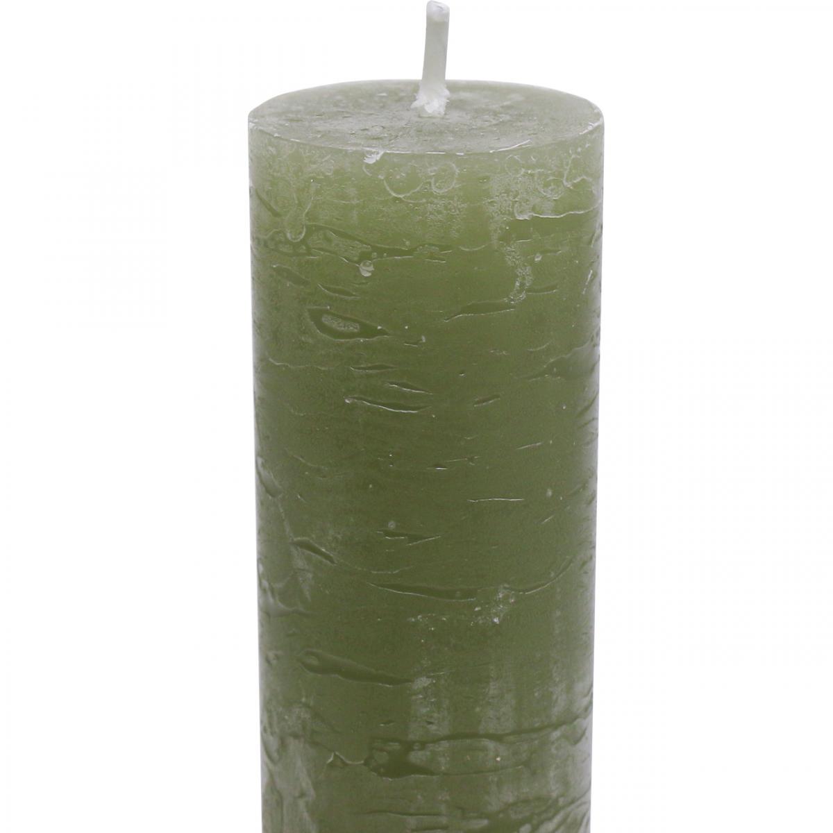 Jednobarevné svíčky olivově zelené tyčinkové svíčky 34×240mm 4 ks