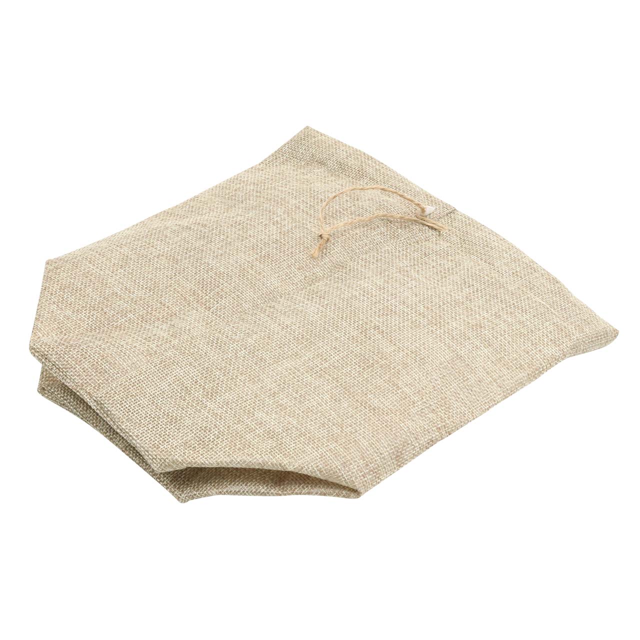 Praktický jutový pytel se šňůrkou je vysoký cca 30 centimetrů. Podlaha má přibližné rozměry 20 × 10 centimetrů.