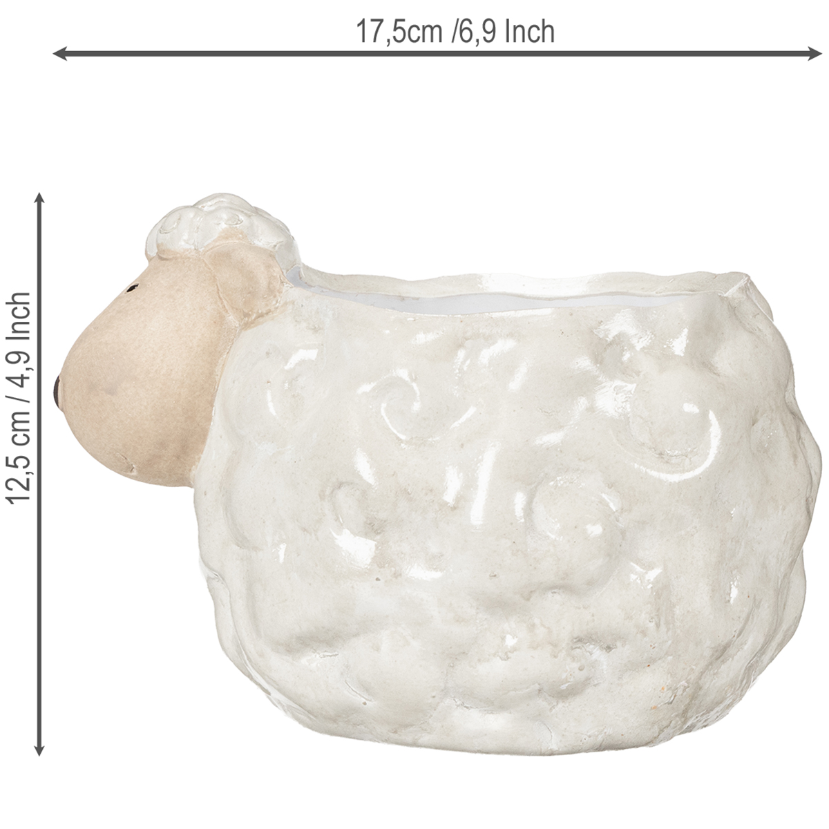 Tento keramický květináč ve tvaru ovečky je vyroben z vysoce kvalitní bílé keramiky a s láskou navržen s nadýchanou texturou a roztomilým obličejem. Tento ručně vyrobený detail dodává květináči hravost a svěžest, aniž by byl kýčovitý. S průměrem 17 cm a výškou 13 cm je tento dekorativní kousek všestranným doplňkem pro rostliny, který se hodí i na úzké police nebo parapety.