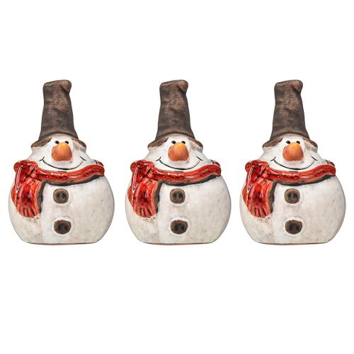Keramická figurka sněhuláka, 8,5 cm, s cylindrem a červeným šátkem - vánoční a zimní dekorace - 3 ks