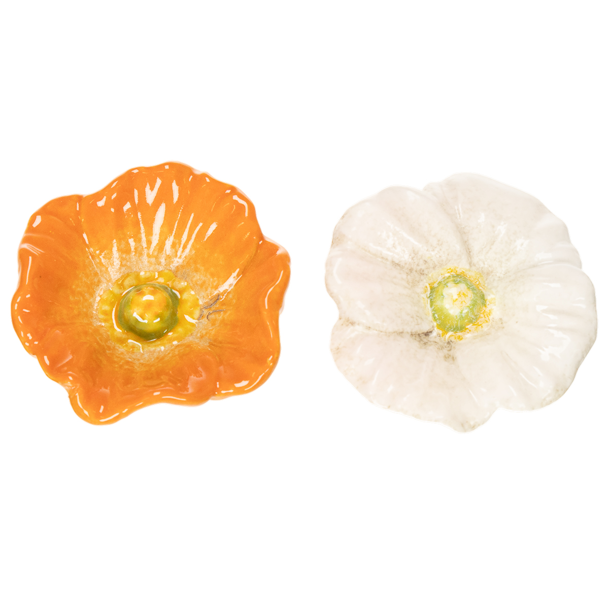 Tyto zahradní kolíky s vlčím mákem kombinují stylovou estetiku s odolnými, vysoce kvalitními materiály. S výškou 32 cm a průměrem květu přibližně 6 cm jsou perfektním doplňkem do jakéhokoli venkovního prostoru. Zářivé oranžové a bílé barvy jsou harmonicky sladěny a jsou oblíbené po celém světě pro svůj symbolický význam: oranžová představuje energii a teplo, zatímco bílá ztělesňuje čistou eleganci a naději. Robustní kovový kolík zajišťuje, že keramický květ zůstane stabilní i při slabém větru. Ať už v klasické venkovské zahradě nebo jako svěží akcent v moderní městské zahradě, tyto kolíky se bez problémů hodí do jakéhokoli stylu.