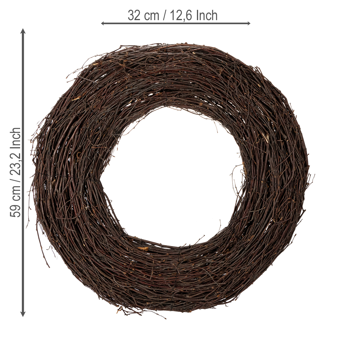 Klasický dekorativní vrbový věnec pro kreativní aranžmá, 59 cm