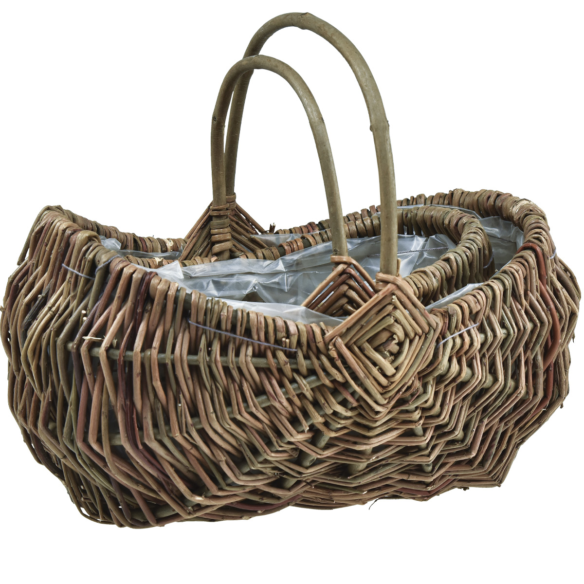 Košík na rostliny s oválným uchem 35×25/25×18cm sada 2 ks