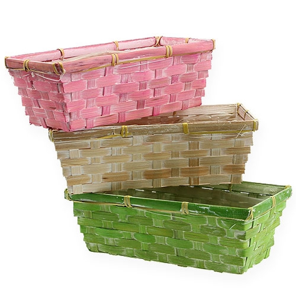 Každý čtvercový košík na rostliny z vícebarevné sady má přibližně 20 x 11 x 7 centimetrů. Rozměr stopy je přibližně 16 x 7 centimetrů. V sadě 8 kusů jsou barvy růžová a zelená k dispozici třikrát, barva přírodní dvakrát.