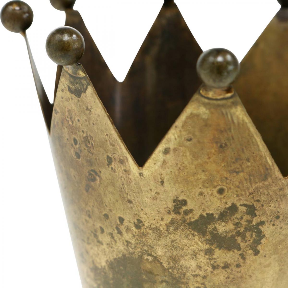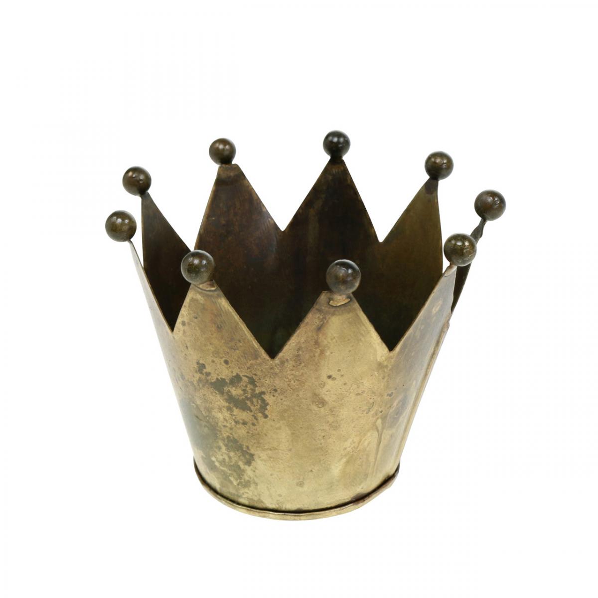 Název produktu: Korunka kovový starožitný vzhled mosazný svícen na čajovou svíčku Ø10cm V8cm