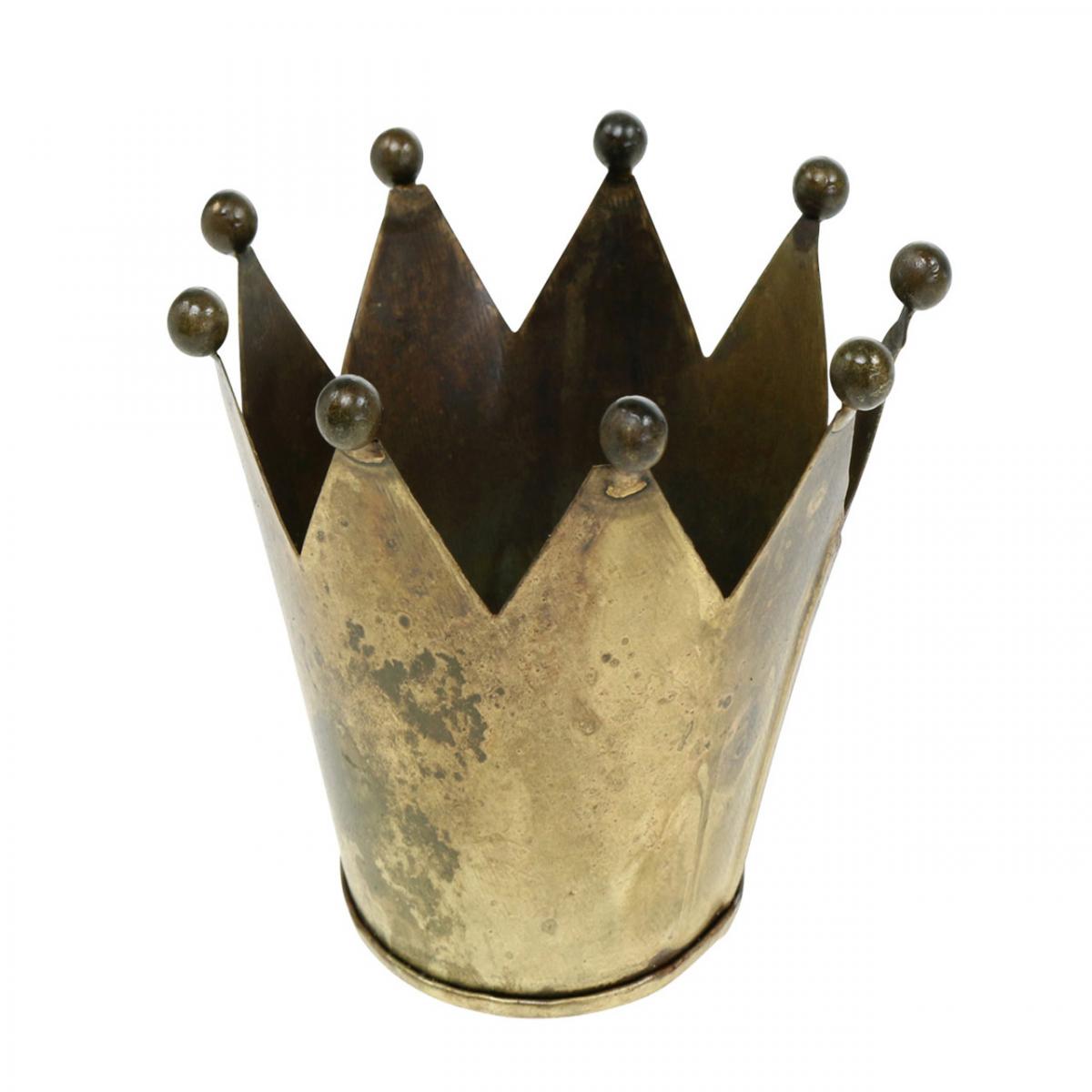 Korunka jako svícen na čajovou svíčku z kovu vnese do dekorace vašeho stolu skutečně královské světlo svíček. Malba ozdobné korunky vytváří starožitný mosazný vzhled se stopami stárnutí, díky čemuž čajová svíčka vypadá jako vintage dekorace. Hroty se směrem nahoru rozšiřují a končí v malých kuličkách - přesně jako korunka z pohádkové knížky!
