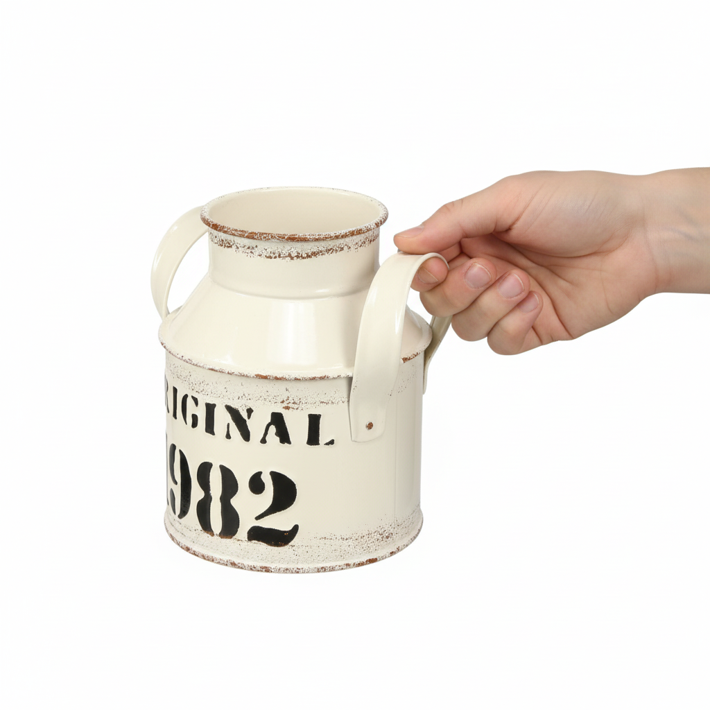 Náš dekorativní kovový džbán s nápisem „Original 1982“ v krémovém a rezavém vzhledu spojuje kouzlo zašlých časů s moderním designem. Tento nádherný džbán je ideální pro každého, kdo miluje vintage styl a chce svému životnímu prostředí dodat hodnotné akcenty. Kovovou dekoraci, která je vybavena dvěma praktickými úchyty, lze snadno přenášet a uspořádat tak, aby upoutala pozornost v jakékoli místnosti. Vyražený černý nápis „Original 1982“ podtrhuje nostalgický charakter tohoto doplňku a činí z něj nepostradatelný prvek v každém interiéru inspirovaném rustikálním nebo venkovským stylem. Perfektní jako květinová váza na sušené květiny nebo pro dekorativní skladování na zahradě, dodá vašemu okolí nádech autentické vintage elegance.