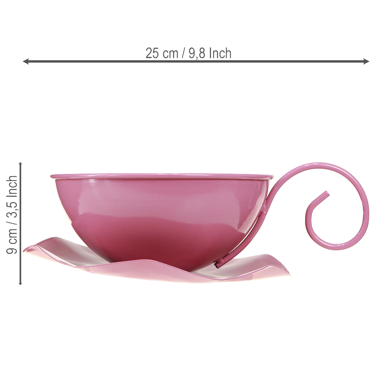 Náš ozdobný hrnek v růžové barvě je skutečným vrcholem každé domácnosti. S průměrem přibližně 16 cm a výškou přibližně 9 cm je kovový kelímek vhodný pro dekorativní i funkční aplikace. Pastelově růžový lakovaný povrch přitahuje pozornost každého a vytváří veselou a příjemnou atmosféru. Zakřivená rukojeť a podšálek ve tvaru květiny dodávají šálku hravý, ale moderní nádech. Díky uchycení šálku k podšálku se tato kovová dekorace skvěle hodí k prezentaci na slavnostním stole nebo na parapetu.