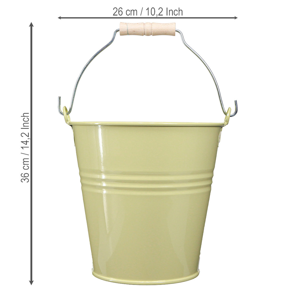 Naše dekorativní kovové vědro zaujme svým atraktivním zelenožlutým povrchem a je vybaveno pohyblivým madlem a dřevěným madlem, které je nejen praktické, ale také podtrhuje nostalgický styl. Elegantní ozdobné drážky dodávají květináči okouzlující nádech, který lze báječně integrovat do různých stylů zařízení. Toto dekorativní vědro zaujme především ve venkovském stylu jako stylový prvek, který lze kombinovat s přírodními materiály nebo rustikálním nábytkem.