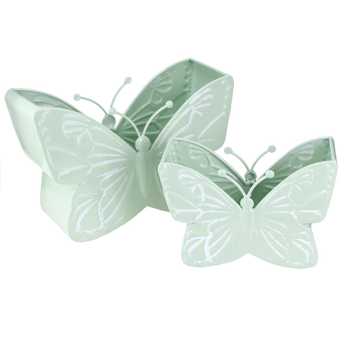 Kovový květináč Butterfly zelený 22,5/30 cm Sada 2 ks