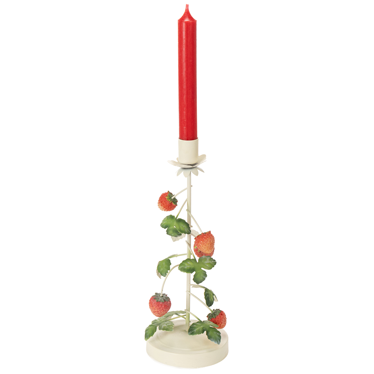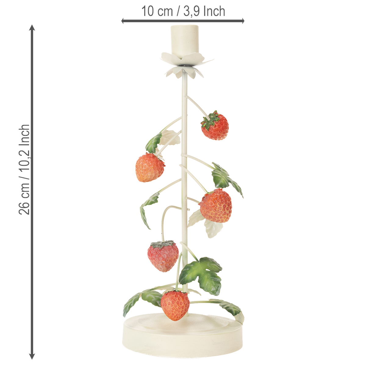 Kovový svícen s jahodovou dekorací, krémový, kulatý, V26cm