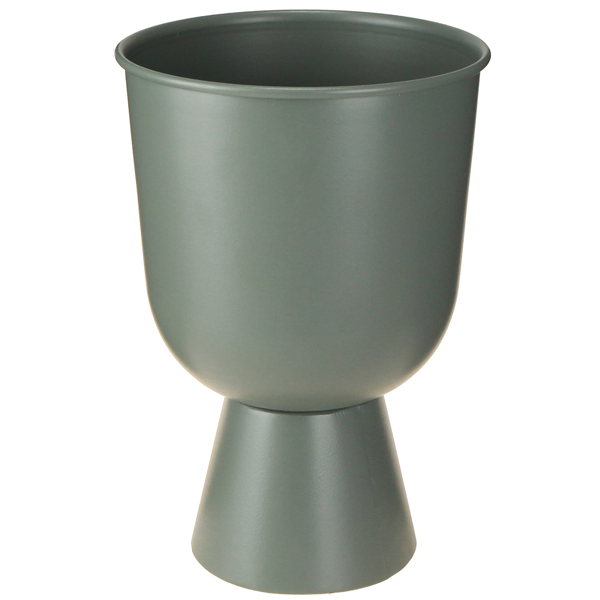 Tato váza ve tvaru poháru okouzlujícím způsobem kombinuje formu a funkci. S výškou 23 cm a průměrem 16 cm nabízí dostatek prostoru pro větší květinová aranžmá nebo neobvyklé dekorativní aranžmá. Matně zelené kovové tělo jí dodává elegantní vzhled, který krásně doplňuje moderní styly interiéru, jako je skandinávský šik nebo minimalistický design. Pro útulnější atmosféru zkombinujte tuto vázu se zemitými tóny nebo teplými dřevěnými prvky.