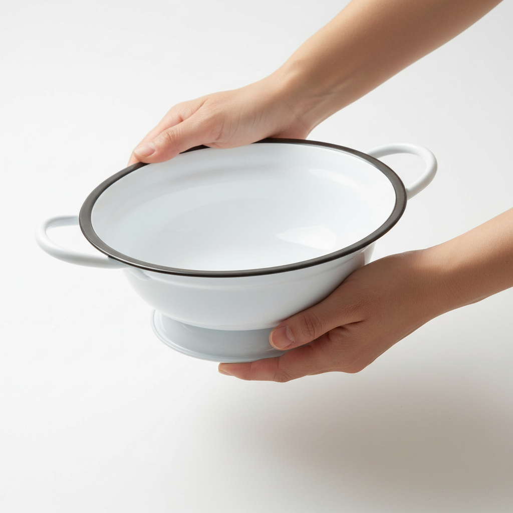 Bílá kovová mísa v moderním smaltovaném vzhledu pro stylovou dekoraci