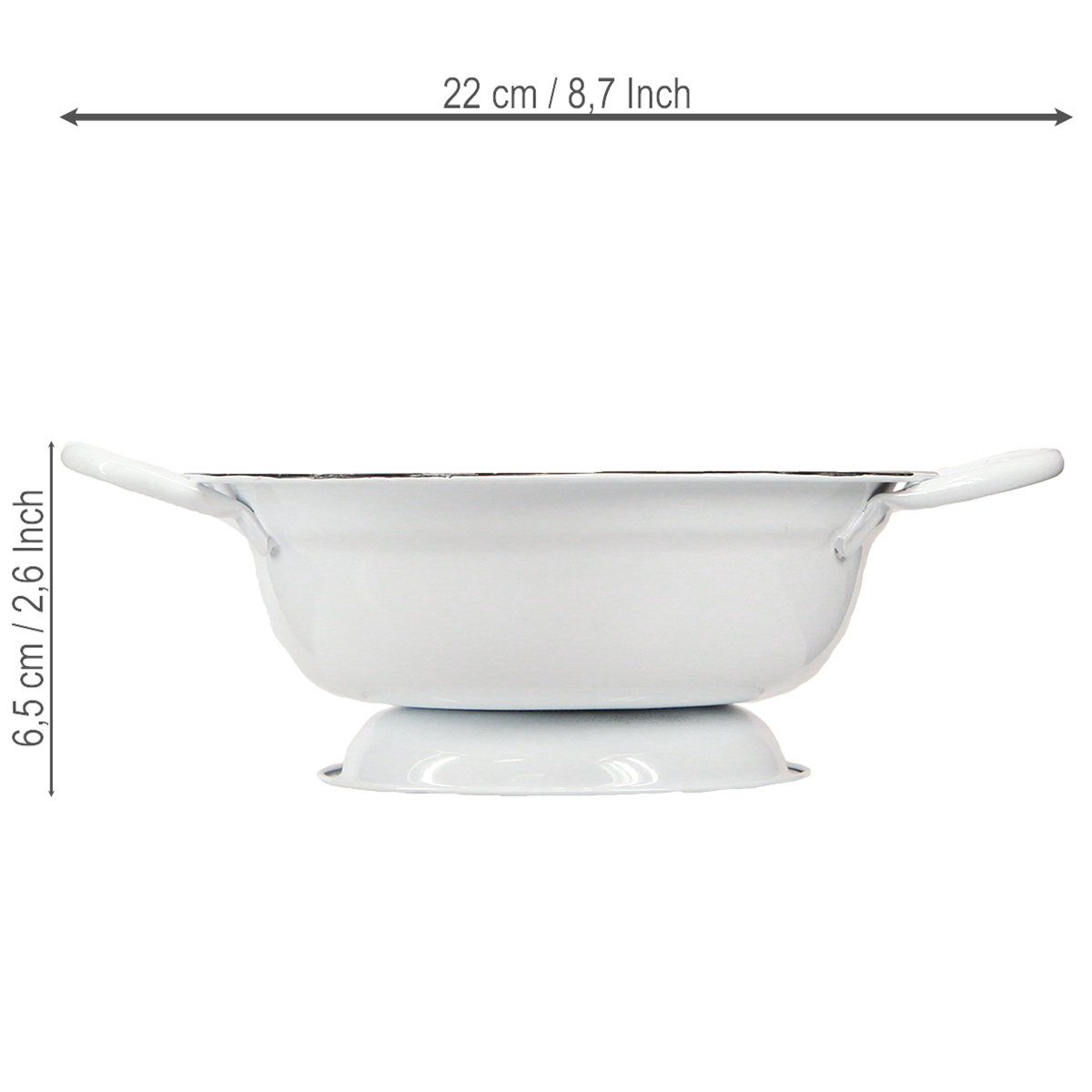 - Materiál: Kov v bílém smaltovaném vzhledu s černým okrajem