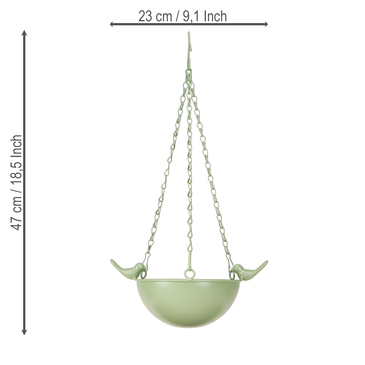 Robustní řetězové zavěšení umožňuje bezpečné uchycení na větve, zábradlí balkonu nebo malé háčky na terase. Obzvláště praktická je odolná a robustní kovová konstrukce, která zaručuje dlouhodobé užívání krmítka pro ptáky. Dva dekorativní ptáci dodávají krmítku hravou eleganci, díky čemuž je ideálním doplňkem pro milovníky venkovského stylu nebo dekorací inspirovaných přírodou.