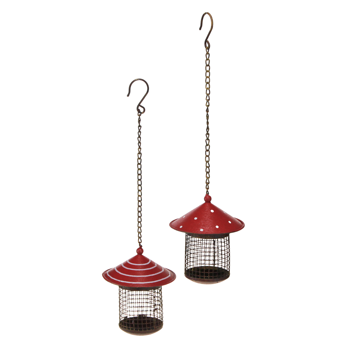 Krmná stanice ptáčků muchomůrka kovová k zavěšení 14cm 2ks