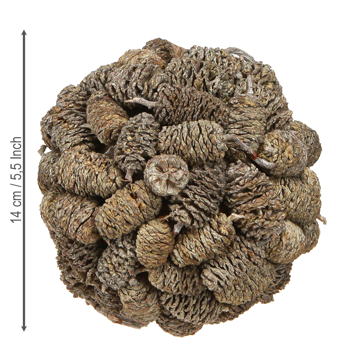Vneste zimu do svého domova – nebo spíše na svůj vánoční stromeček! Tato šišková koule vyrobená z natřených olšových šišek dodá vaší výzdobě nádherně přírodní nádech. Ať už jako jedinečná ozdoba na vánočním stromečku, stylový doplněk zimní výzdoby nebo jako slavnostní akcent na pamětních věncích – tento výjimečný kus přírodní dekorace vždy vytvoří útulnou atmosféru. Jemný bílý třpyt na okouzlujících olšových šiškách vnese zimní atmosféru přímo do vašeho domova.