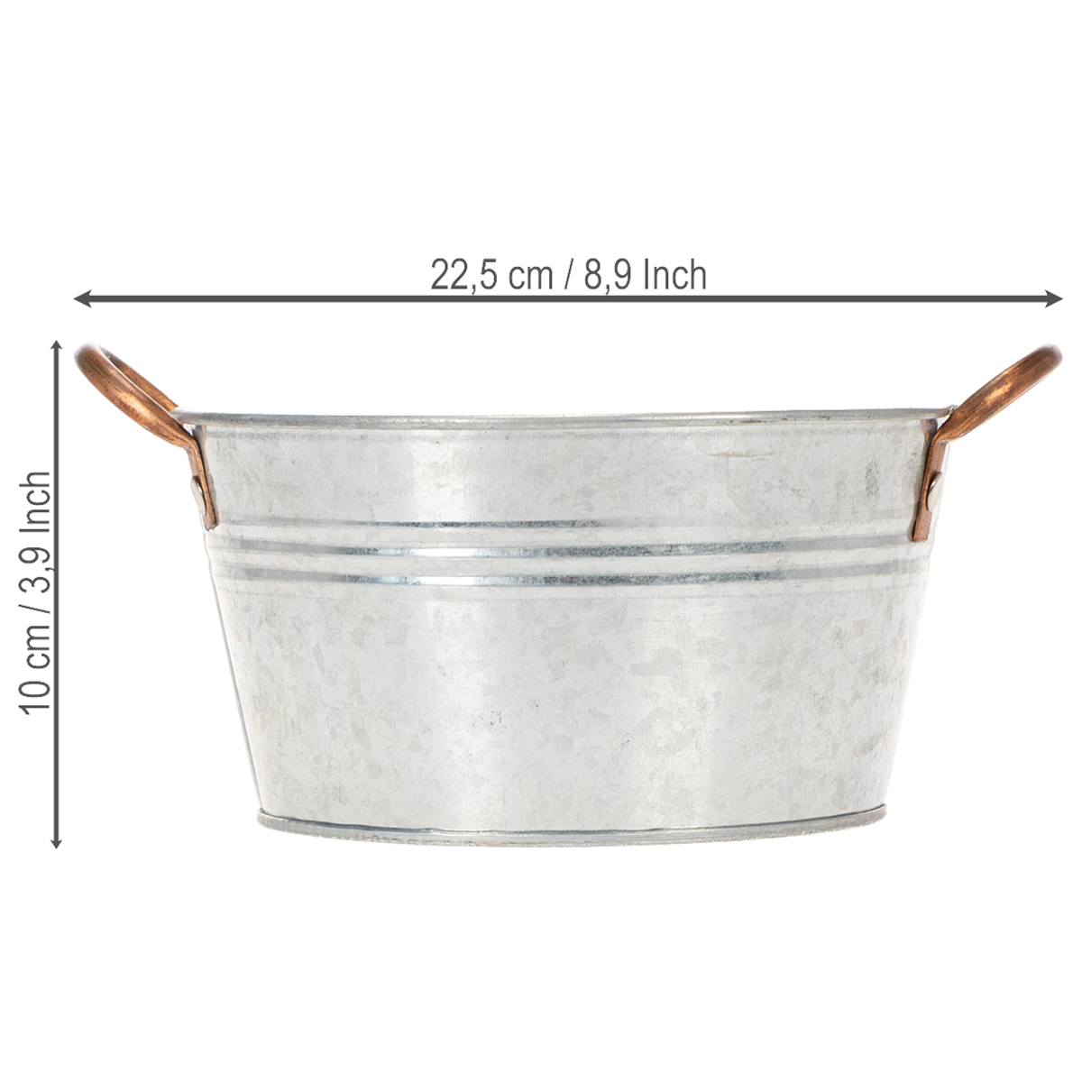 Chtěli byste krásně osázet nádoby na jaro? Pak obohaťte svou dekoraci o tuto stylovou, ale praktickou kulatou květinovou misku s uchy. Kovová nádoba se stříbrným zinkováním a ozdobnými uchy v barvě mědi doplní svým jedinečným designem každý interiérový design a ve vašem domě nebo zahradě bude opravdovým poutačem.