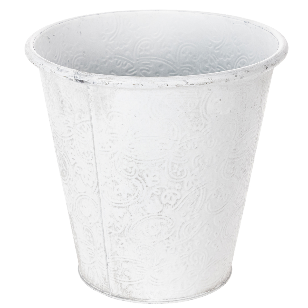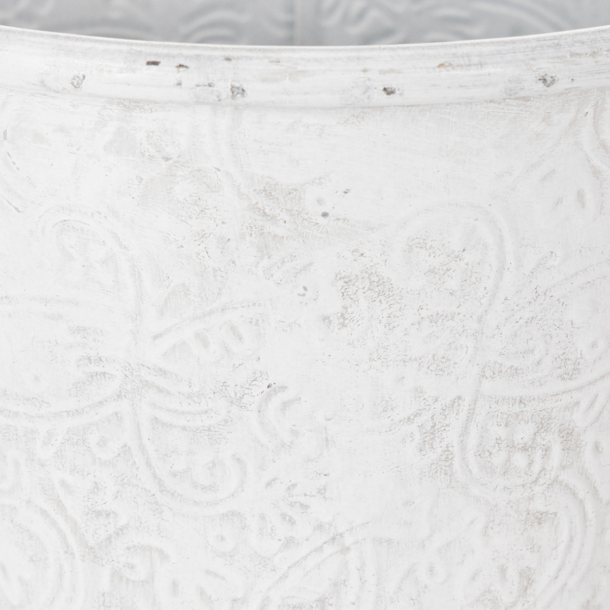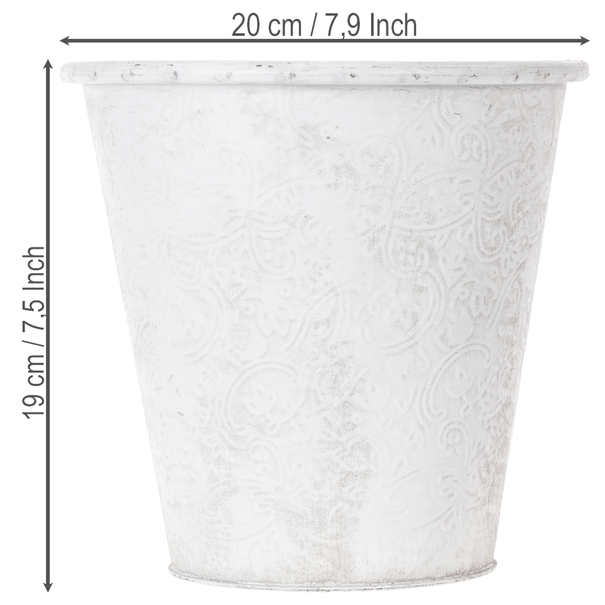 Pohádkový košíček je zdoben ornamenty: Kovová dekorace je po celém obvodu vyražena květinovými květinami. Kovová nádoba se svým romantickým vzhledem a bílým praním v trendy shabby chic skvěle hodí i jako dekorace na stůl ve vintage stylu na květinovou výzdobu na svatbu!