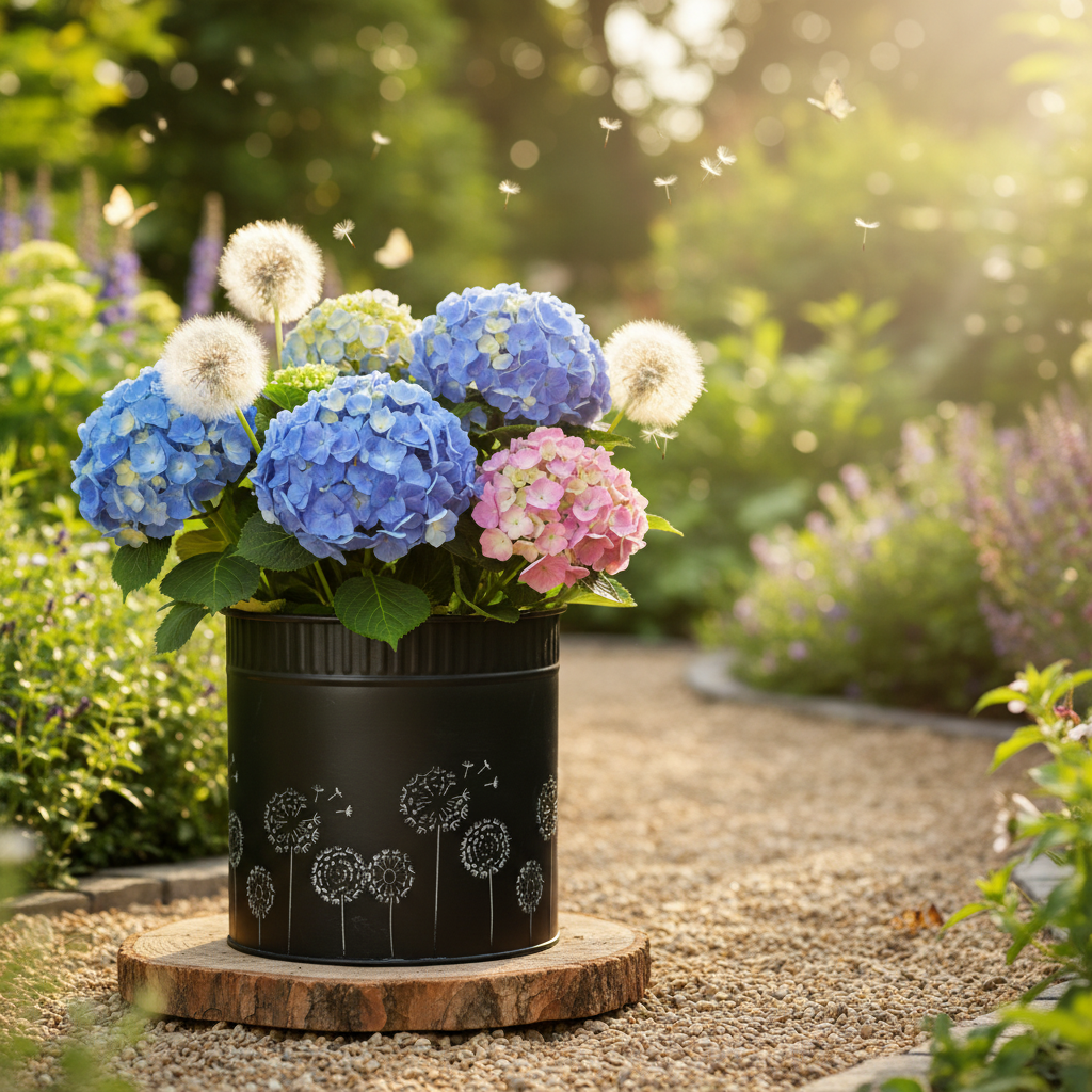 Květináč s pampelišky dodá květinám a aranžmá originální vzhled v letních dekoracích. Černý květináč ale může také poskytnout speciální prostředí pro malou zelenou rostlinu.