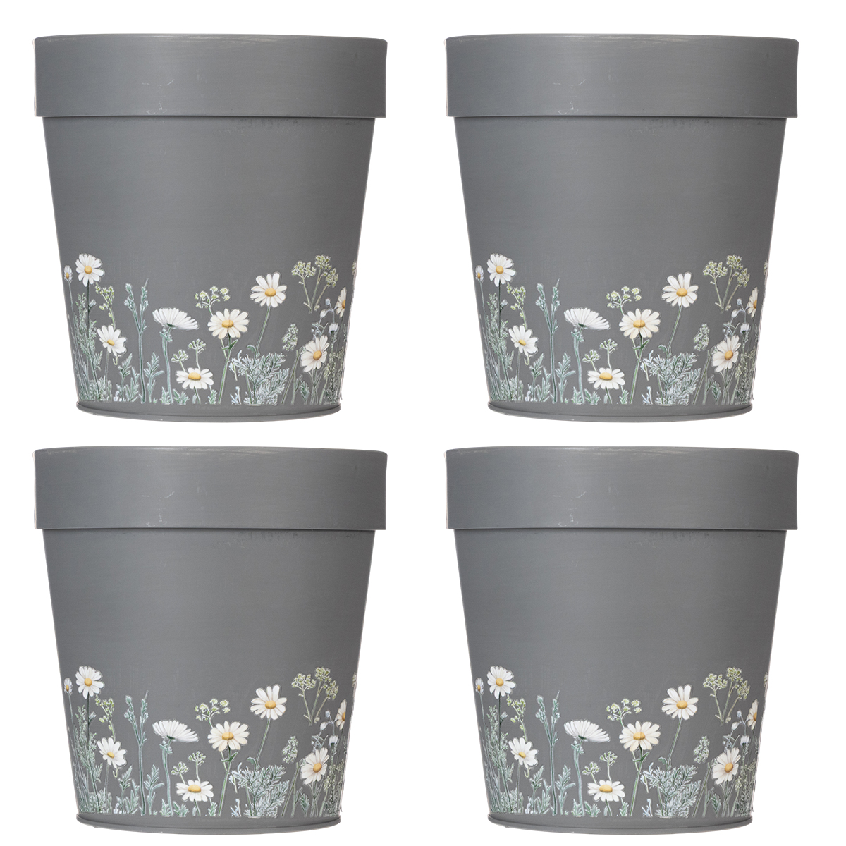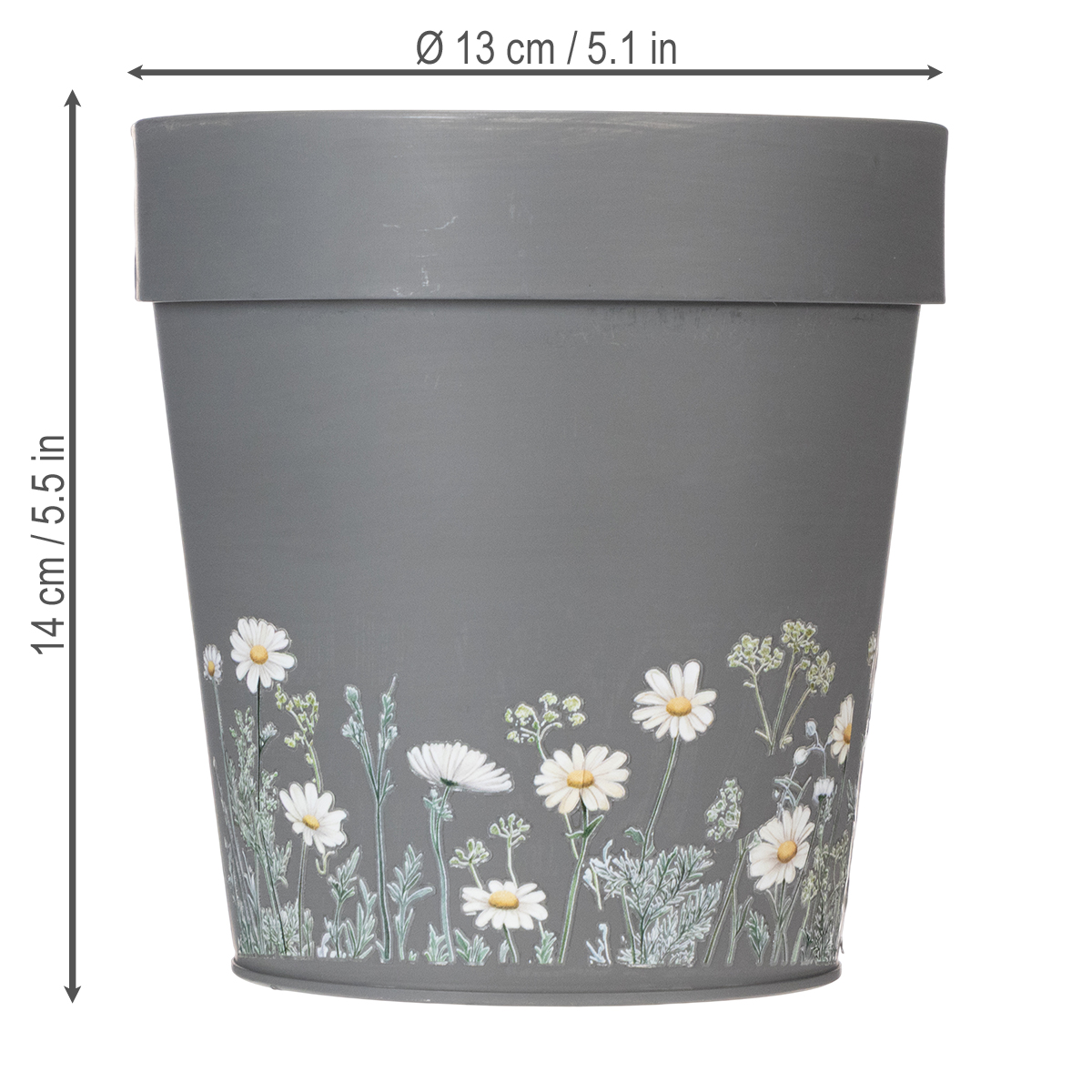 Tento květináč s výškou 14 cm a průměrem 13 cm je ideální pro malé rostliny, jako jsou sukulenty, mini orchideje a sezónní květinové aranžmá. Je také skvělým květináčem na okenní parapet. Tento praktický, snadno udržovatelný a vizuálně přitažlivý šedý květináč s květinovým vzorem vytváří krásný kontrast se zelenými nebo barevnými rostlinami. Sada čtyř květináčů vám také umožní vytvořit harmonický vzhled v několika místnostech vašeho domova nebo poskytnout vhodné místo pro různé rostliny.