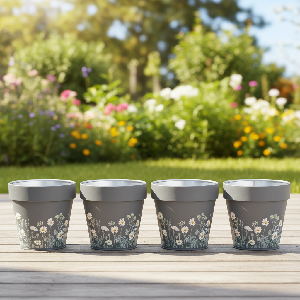 Květináč s motivem sedmikrásek pro stylový interiérový design, 11 cm, 4 kusy