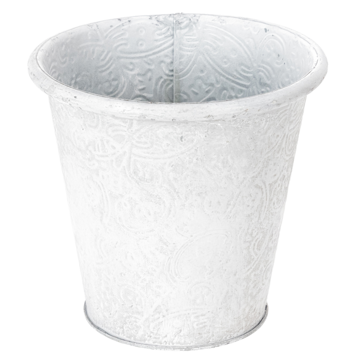 Květináč s ornamenty, květináč, kovová nádoba, bílá, Ø15,5 cm, V14,5 cm