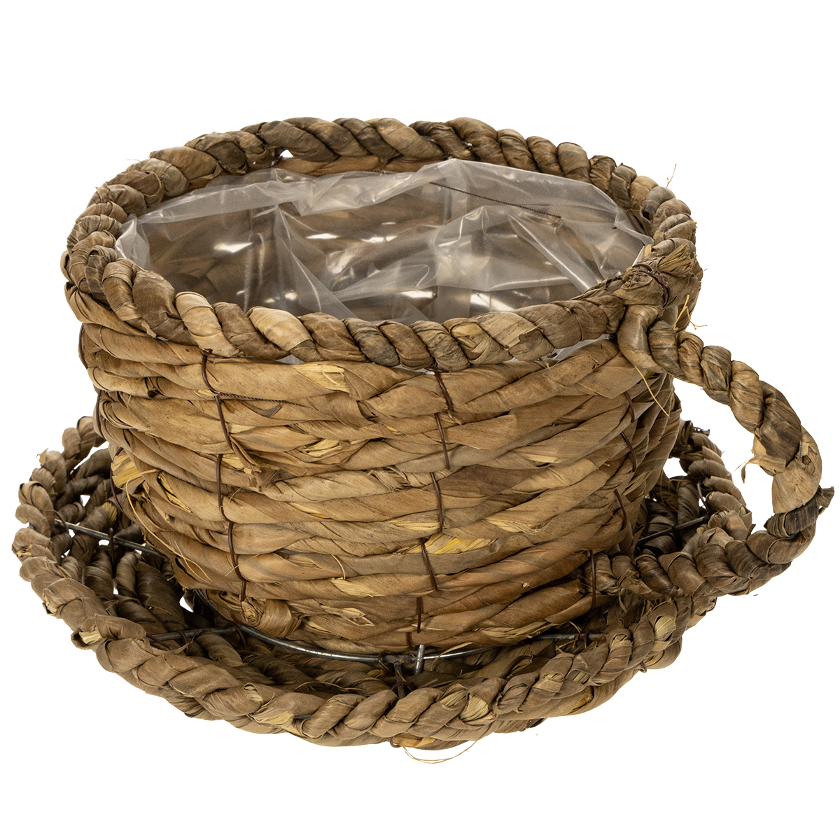 Květináč s podšálkem, malý slámový květináč, Ø17cm V13cm