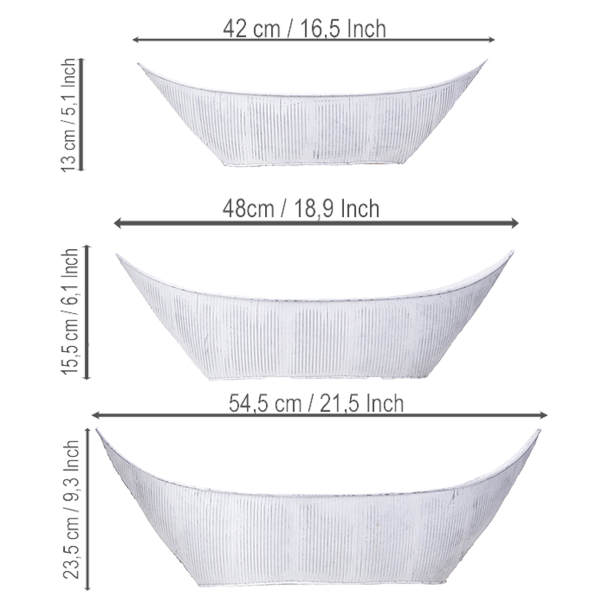 Květináč, ve tvaru lodičky, kov, bílá/stříbrná, 54,5/48/42 cm, sada 3 kusů