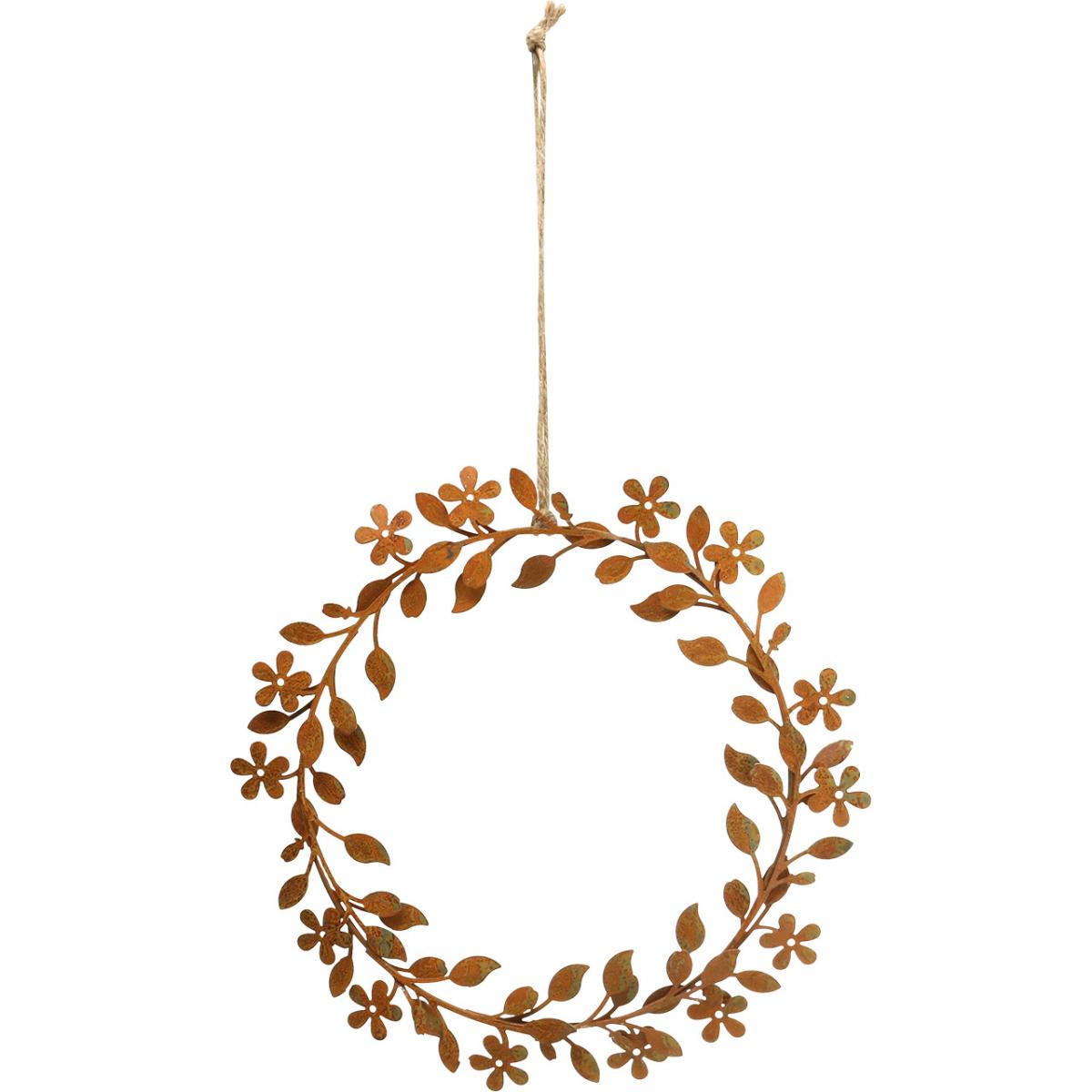 Květinový věnec kovová dekorace rezavý vzhled věnec jarní dekorace Ø20cm 3 ks