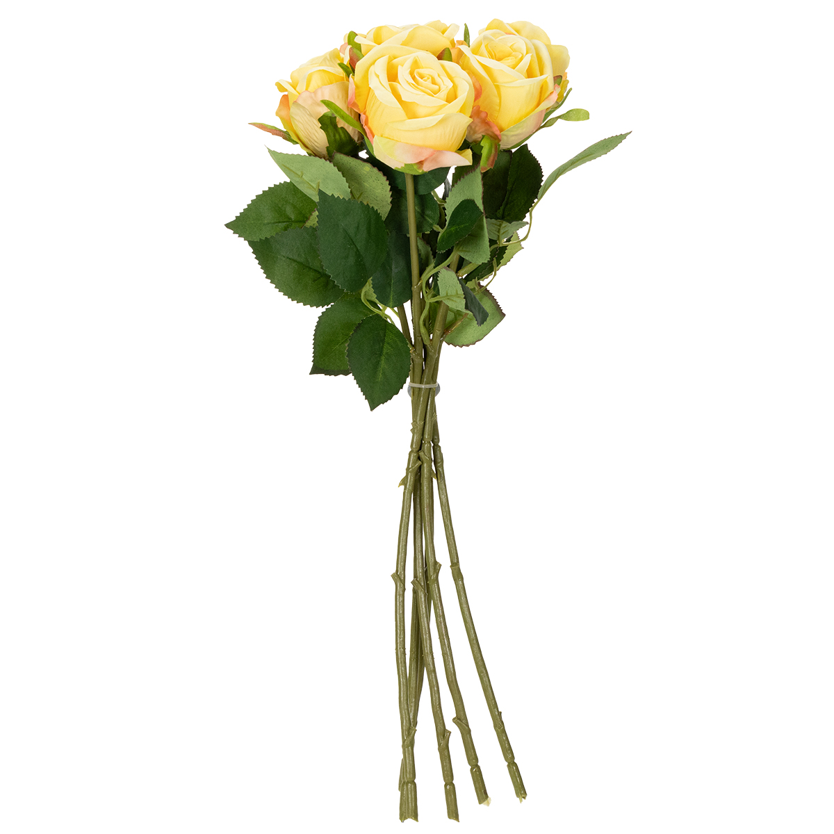 Kdo by tohle nezažil? Stylově zařízený obývací pokoj, příjemnou atmosféru u jídelního stolu nebo elegantní prostředí v kanceláři – to vše s nádechem přirozenosti. Ale skutečné květiny rychle vadnou a péče o ně může být časově náročná. S naší kyticí růží v zářivě žluté barvě vnesete do svého domova dokonalou kombinaci dlouhověkosti a krásy. Ať už jako doplněk na jídelním stole nebo jako zvýraznění na komodě, tyto dekorativní umělé květiny rozzáří každou místnost. Hledáte něco, co je nenáročné na údržbu, kvalitní a stylové? Pak je tato kytice umělých růží perfektní volbou!