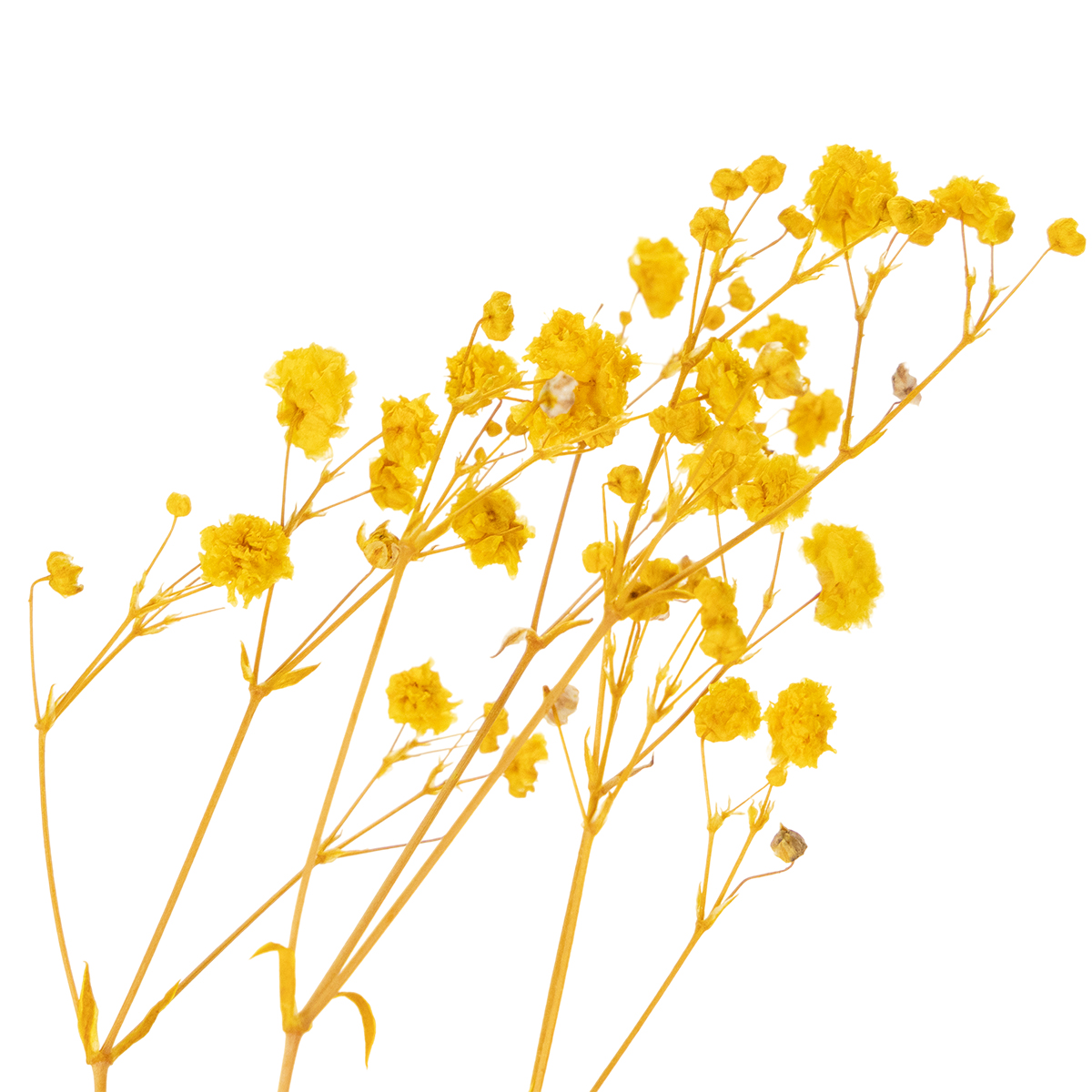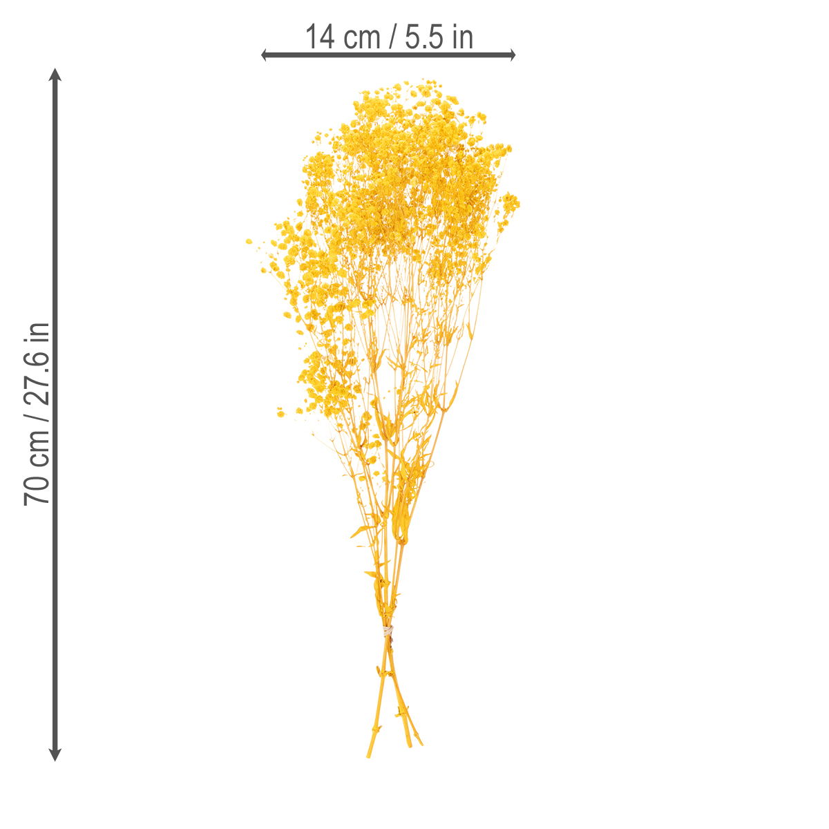 Dětský dech symbolizuje lehkost a eleganci a v této kytici dodává veselý nádech teplé žluté. Tato kytice, vyrobená z pravých, pečlivě sušených květin, je ideální do interiéru i chráněných venkovních prostor.