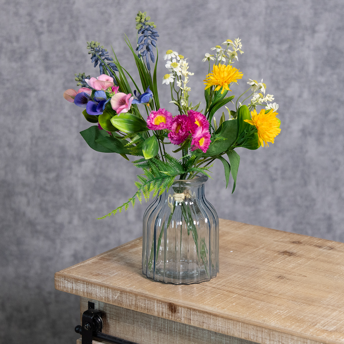 Zářivě žluté květy symbolizují energii a radost ze života, takže se perfektně hodí na jaro. Jemné modré tóny představují klid a vyrovnanost, což kytici dodává příjemnou atmosféru i ve stresujícím prostředí, jako jsou zasedací místnosti. Růžové květy vyjadřují jemnost a romantiku – ideální prvek pro svěží a hravý vzhled. Tato kytice je víc než jen dekorace – přináší pozitivní poselství do jakéhokoli prostředí.