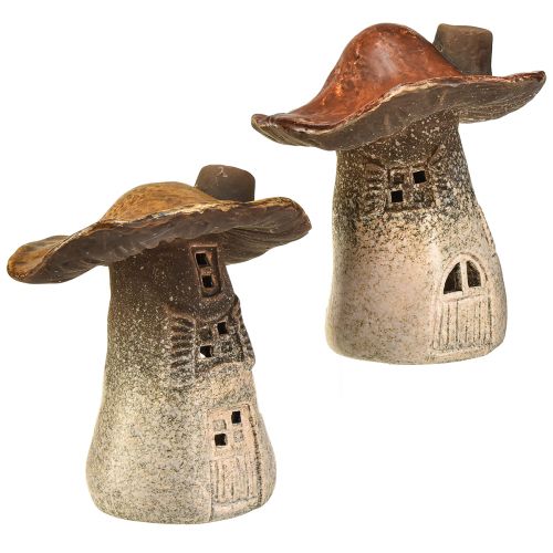 Lampiony do domu z kouzelných hub – rustikální keramika, hnědá, 14,5 cm – jedinečná světelná dekorace Balení po 2 kusech