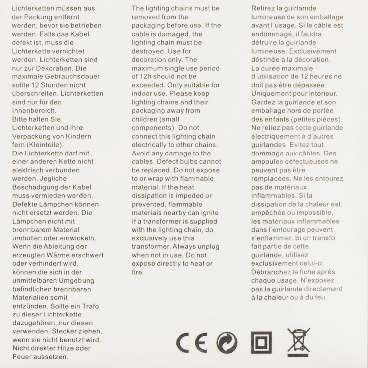 Elektrická pohádková světla: Elektrická recyklace v souladu s místními předpisy.