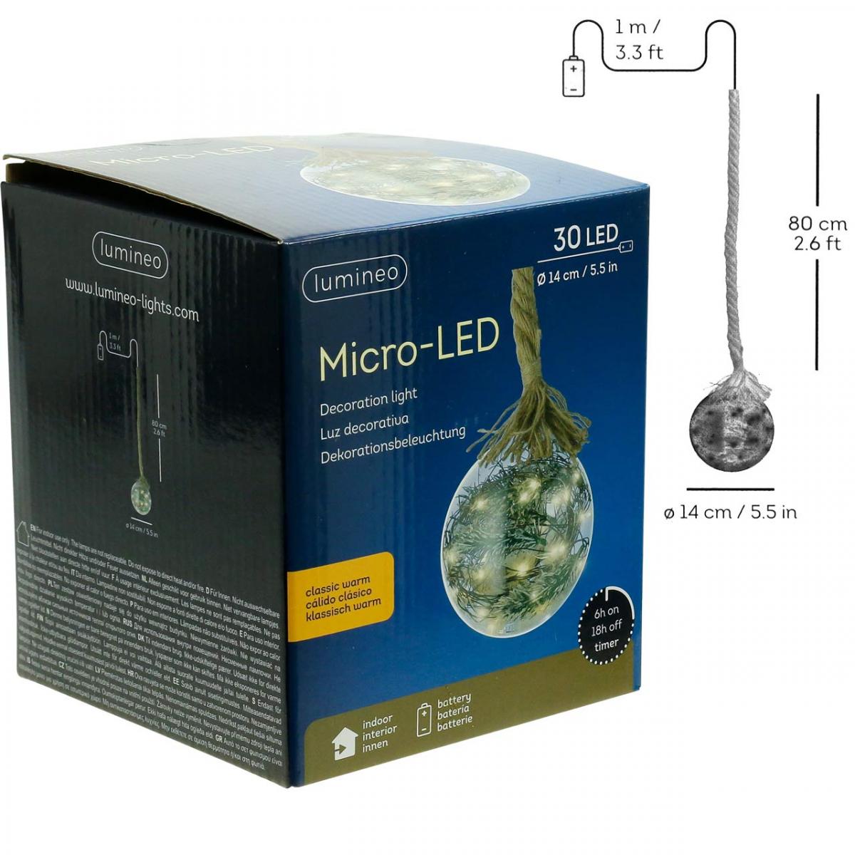 LED koule sněhová jedle vnitřní Ø14cm 30L teplý bílý časovač