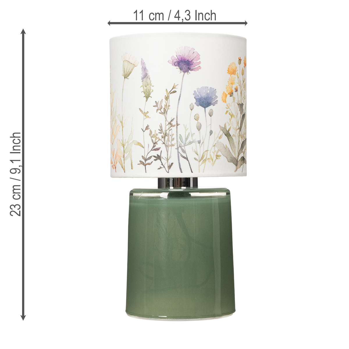 Hledáte lampu, která nejen poskytuje příjemné světlo, ale také dodá vašemu pokoji nádech elegance? Tato květinová stolní lampa je skutečným vrcholem každého obytného prostoru! Okouzlující skleněné stínidlo v kombinaci se sofistikovanou zelenou keramickou základnou z ní dělá všestranný dekorativní prvek – ať už je váš styl moderní, romantický nebo skandinávský. Díky kompaktním rozměrům o výšce 23 cm a průměru 11 cm se perfektně hodí na odkládací stolky, noční stolky nebo police. Zároveň LED technologie poskytuje příjemné a energeticky úsporné světlo, které okamžitě zútulní váš domov.
