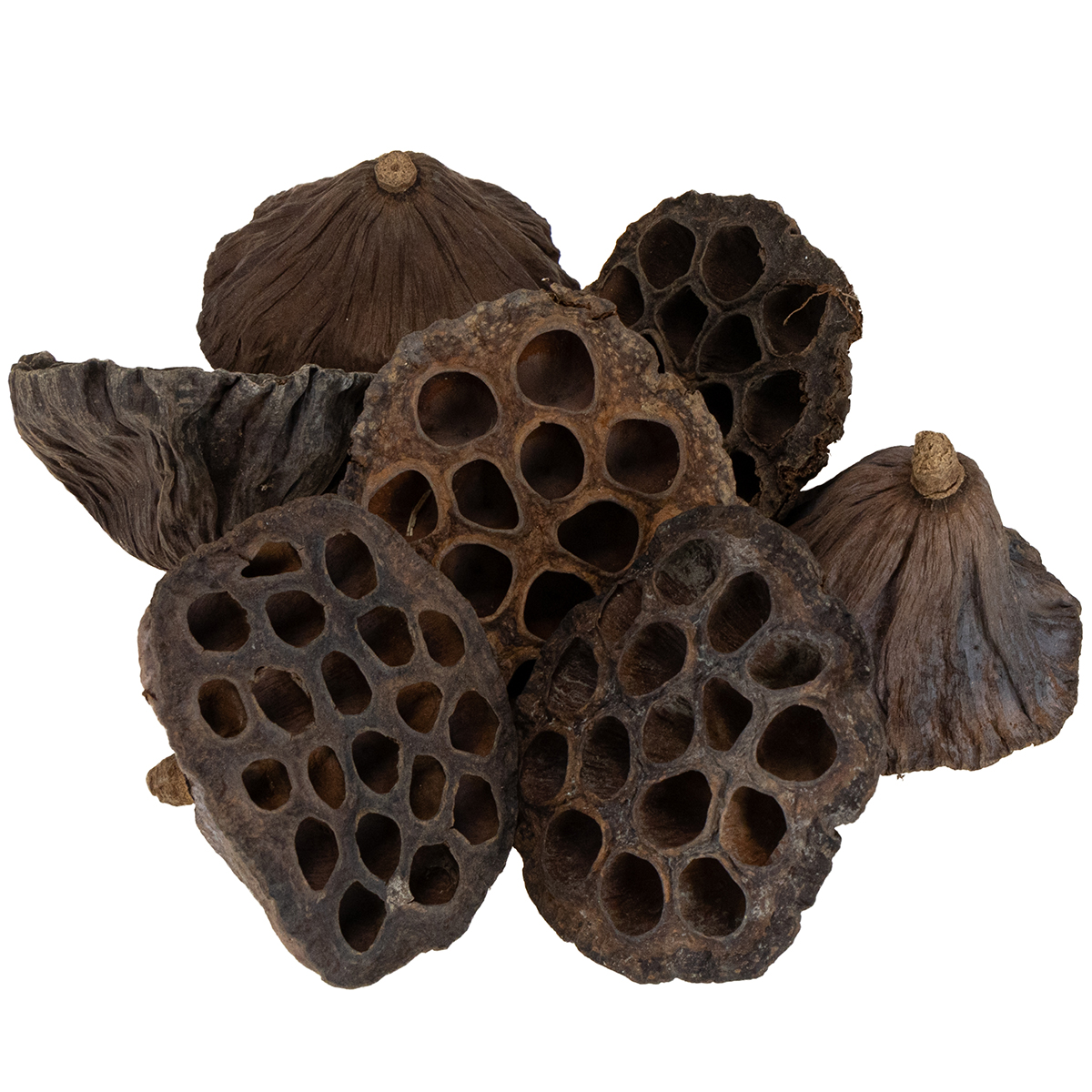 Lotosové písty v přírodní barvě jsou 100 kusů ve velkém sáčku a jako přírodní produkt se mohou lišit od uvedených rozměrů. To znamená, že lignifikované cibulky lotosu mohou mít velikost přibližně 4,5 až 6,5 centimetrů a průměr mezi 6 a 9 centimetry.