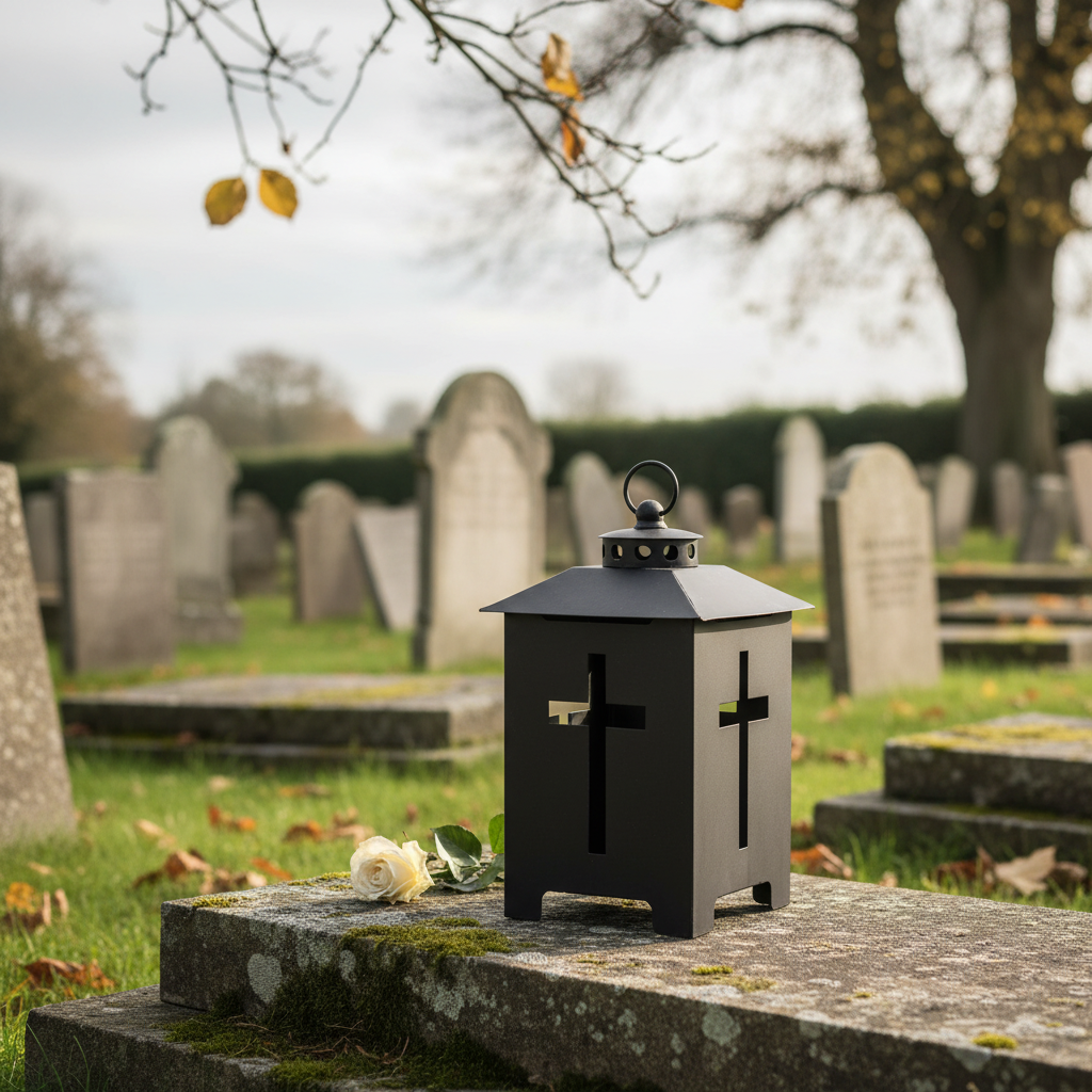 - Kovové náhrobní světlo s křížky pro smysluplnou symboliku