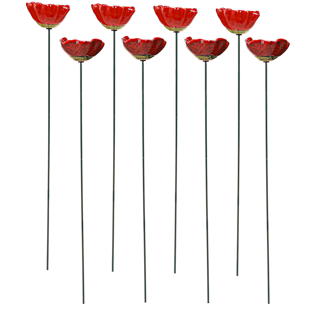 Dodejte své zahradě sofistikovaný nádech s mákem jako keramickou dekorací v červené barvě. Tyto rozkošné keramické květiny nejen upoutají pozornost, ale také dodají vašim venkovním prostorům jasné barevné akcenty jako zahradní kolíky. Tyto červené keramické vlčí máky jsou ideální pro rozjasnění zahradních záhonů a nabízejí stylový způsob, jak vytvořit letní aranžmá. Se dvěma různými tvary květin na tenké zelené drátěné tyči jsou ideální pro harmonickou integraci do různých stylů. Ať už ve vstupním prostoru pro vytvoření příjemné atmosféry nebo jako vrchol ve vašich květináčích, tyto máky slibují povzbuzující doplněk do každého prostředí. Objevte všestrannost keramických máků a popusťte uzdu své kreativitě, abyste vytvořili atmosféru plnou kouzla a barev.