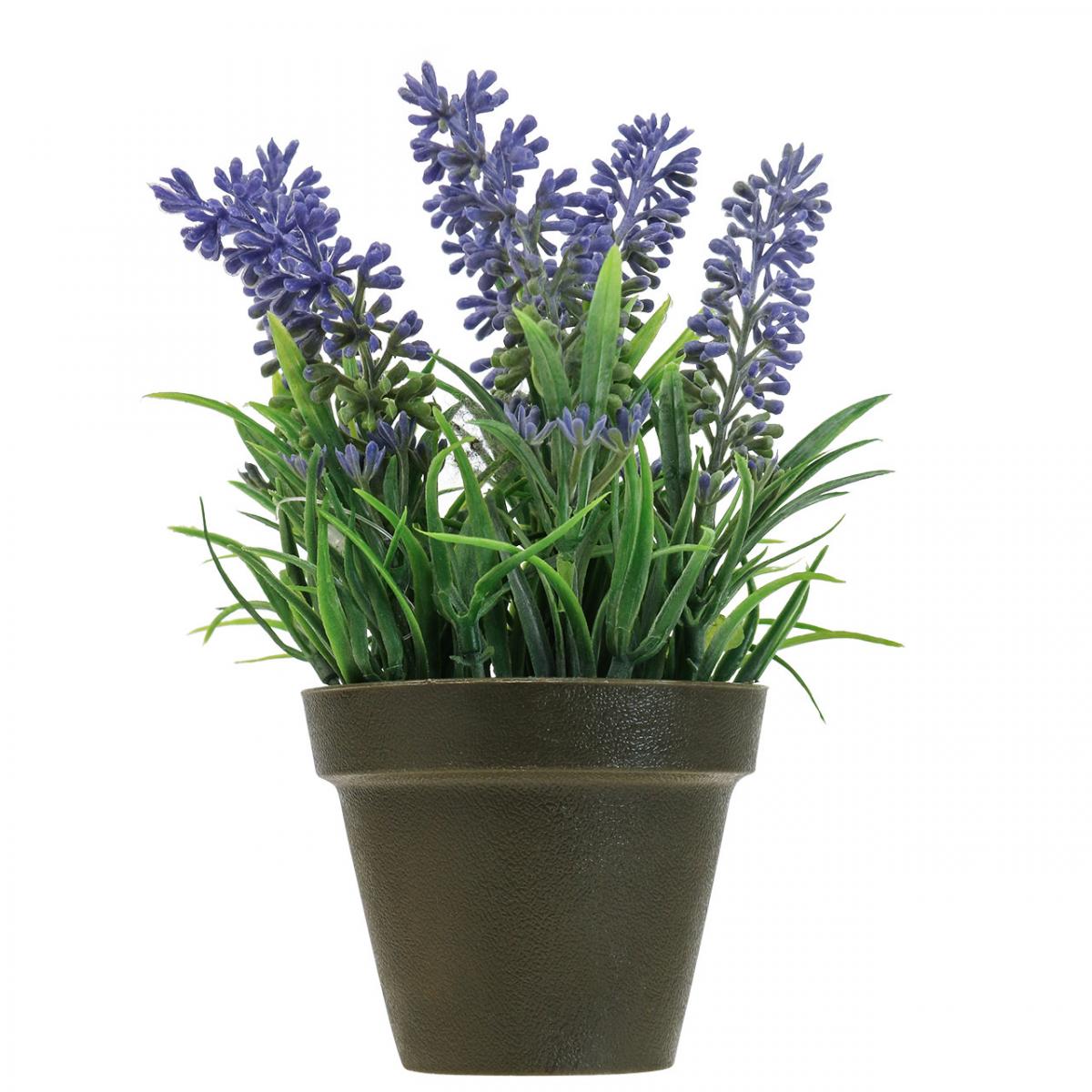 Pohled na tuto bohatě kvetoucí mini levanduli v květináči vyvolává představy letních odpolední pod jižním francouzským sluncem. A zatímco váš suvenýr z cest voní z police, umělá rostlina jako levandulová dekorace potěší především oko svou charakteristickou barvou, která nikdy nebledne.