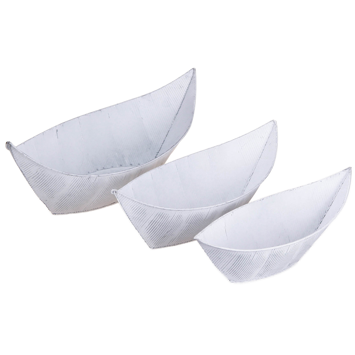 Miska na rostliny člun kov bílá stříbrná 54,5/48/42 cm sada 3 ks