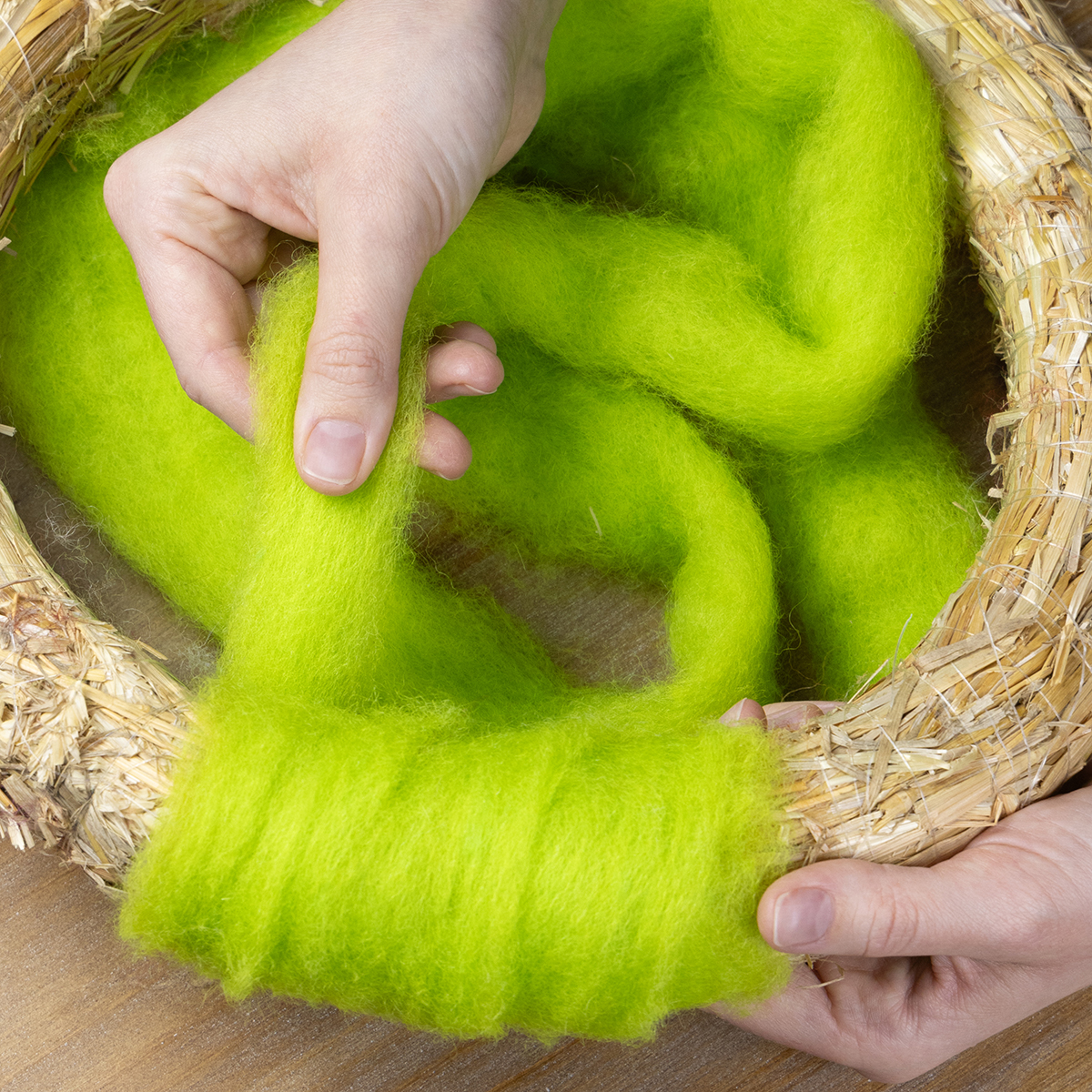 Měkká plstěná vlna na dekoraci v zářivě zelené barvě