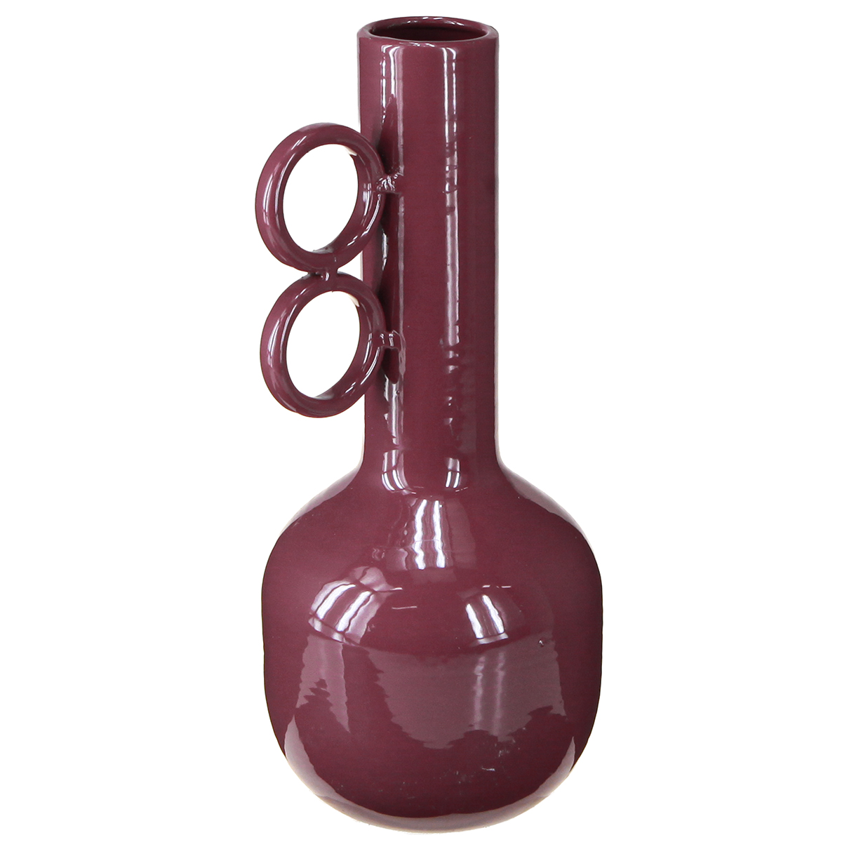 Moderní designová váza s dlouhým hrdlem a kulatými úchyty