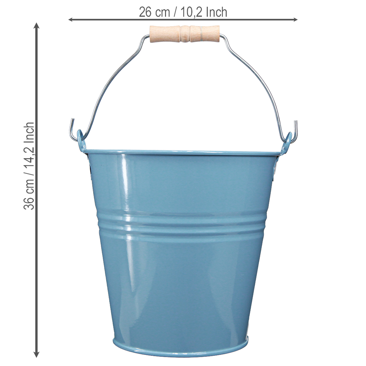 Objevte okouzlující dekorativní vědro v nadčasové modré. Jako květináč vyrobený z kovu zaujme svou elegantní lehkostí a robustní kvalitou. Vybaveno dřevěnou rukojetí, kombinuje funkčnost s dekorativní přitažlivostí, ideální pro výzdobu interiéru i exteriéru.